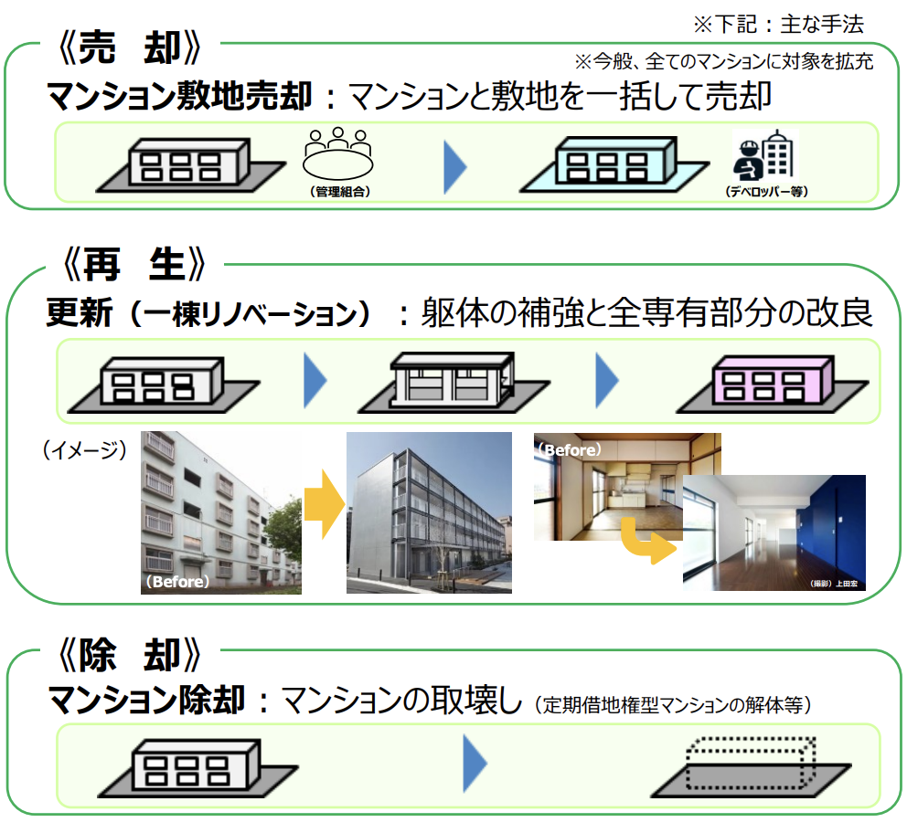 マンション関係法の改正によって“出口”が多様化することに加え、実現可能性が高くなります。しかし、依然として残る課題はあり、すべてのマンションの再生や売却が進むわけではありません。