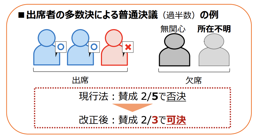 3.「出席者」の多数決でOK、集会決議が円滑に