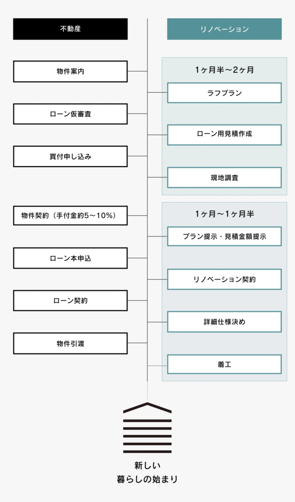 もともと住んでいた家ではなく、中古住宅を購入する際にリフォームやリノベーションをする場合は、「物件探しをどうするか」によっても適切な会社の選び方は変わってきます。既に仲介会社などを通じて購入する物件が決まっている人は、リフォーム会社、リノベーション会社を自分で探すか、仲介会社に紹介してもらうことが多いのですが、物件探しからリノベーション会社に相談することもできます。