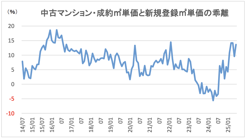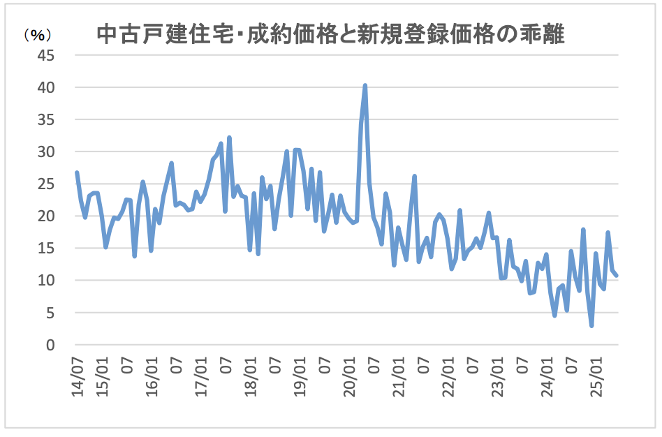 図表1:成約価格と売り出し価格(新規登録価格)の乖離率